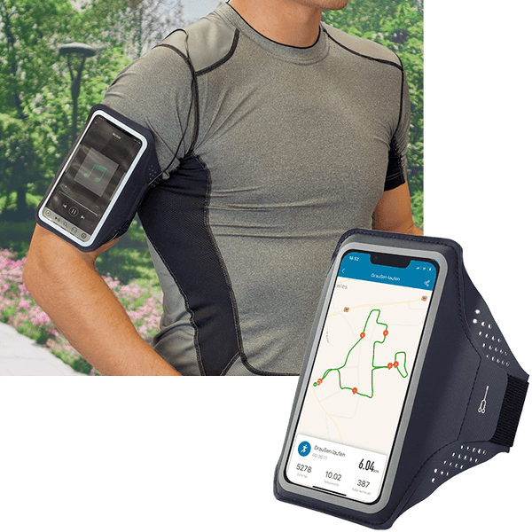 Der Sound für die Joggingrunde steht - nur wie kommt er mit? Packen Sie Ihr Smartphone in das Sport-Armband und dieses an Ihren Oberarm. So haben Sie beim Laufen alle Freiheiten und trotzdem Zugriff auf Ihr Handy, z.B. um schnellere Beats für das Halbmarathon-Training auszuwählen.